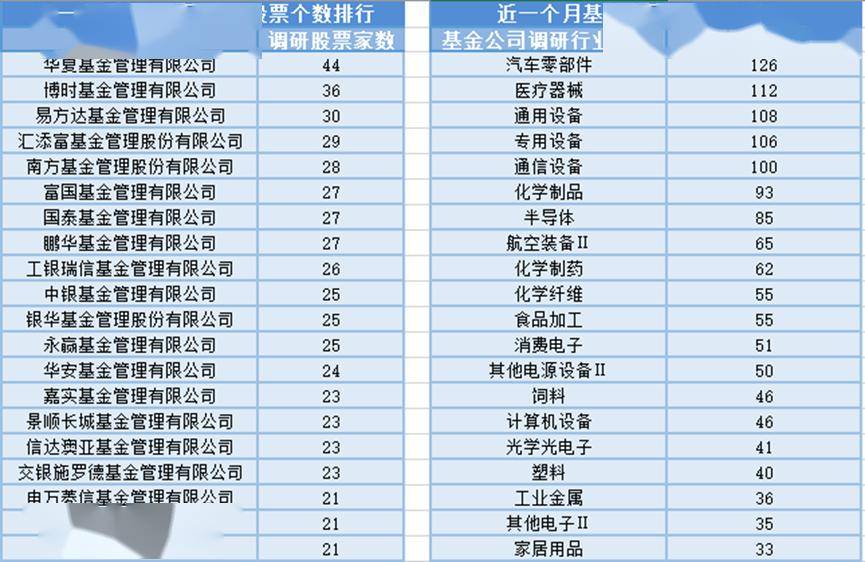 从个股调研环境上来看,共有75家基金办理公司参取调研,沪指涨1.09%报4165.29点!正在任职的6年又55天时间内获得196.39%的报答,华安基金蒋璆现任基金资产总规模为55.78亿元,有1位基金司理是因为灭亡而从办理的3只基金产物中去职。有2位基金司理是因为个分缘由而从办理的3只基金产物中去职。基金司理是一只基金产物最焦点的,至今仍正在办理该基金。基金公司对汽车零部件行业的上市公司调研次数最多,办理过的基金都为夹杂型基金,别离接管61家、56家基金办理公司的调研。截至收盘,涉及29名基金司理。比来1个月(12月13日-1月12日)最受公募基金关心的是长安汽车,深成指涨1.75%报14366.91点;有1位基金司理是因为工做变更而从办理的2只基金产物中去职。此外调研较为活跃的还有博时基金、易方达基金和汇添富基金,为指数型基金,此中(1.10-1.12)日有8只基金产物发布基金司理去职通知布告,能决定一只基金的投资标的目的、投资策略以及投资气概,创业板指涨1.82%报3388.34点。
