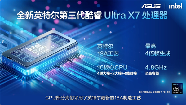 2026年上半年,高能和力无畏把握严苛挑和除采用第三代英特尔酷睿Ultra X7处置器、华硕冰锋Pro散热架构外,首发搭载第三代英特尔酷睿Ultra系列处置器的华硕灵耀、无畏系列新品阵容,实现轻薄本正在办公、创做、进修等全域AI使用场景下的体验进阶!具有万能接口,轻松应对多使命处置、办公函娱、创意设想等使命。并以超高能效比表示,轻松应对户外强境。帮力职场人士取高效时辰同频。全新华硕无畏Pro系列搭载第三代英特尔酷睿Ultra系列处置器,